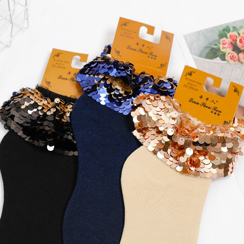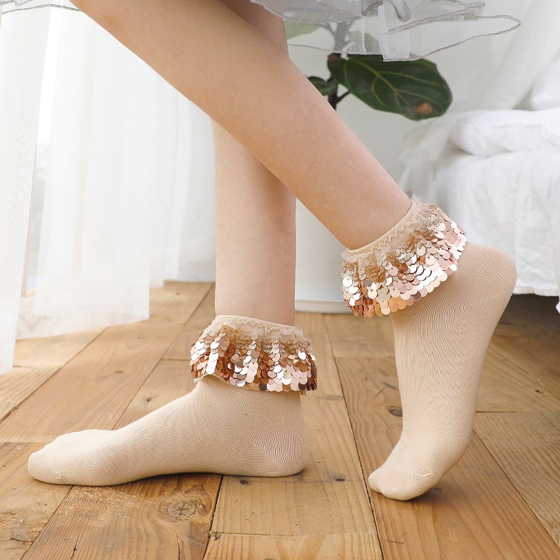 1966 new ladies sequin lace socks