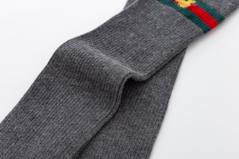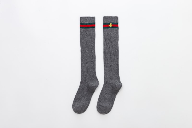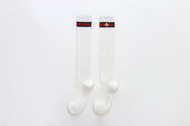 2114 Double Needle Bee Embroidered Calf Socks