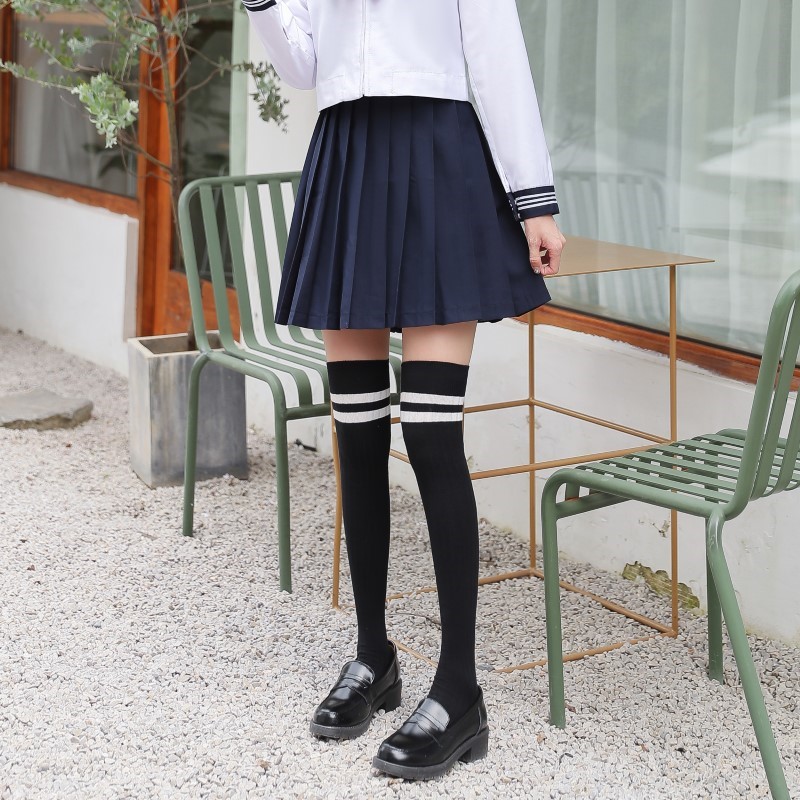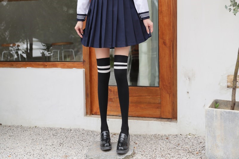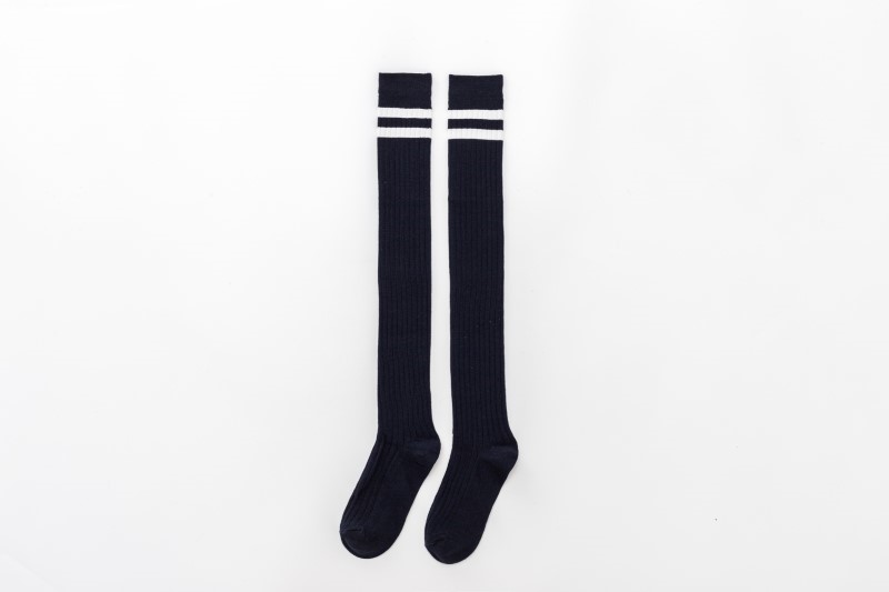 3005 thick two-bar vertical strip over the knee socks