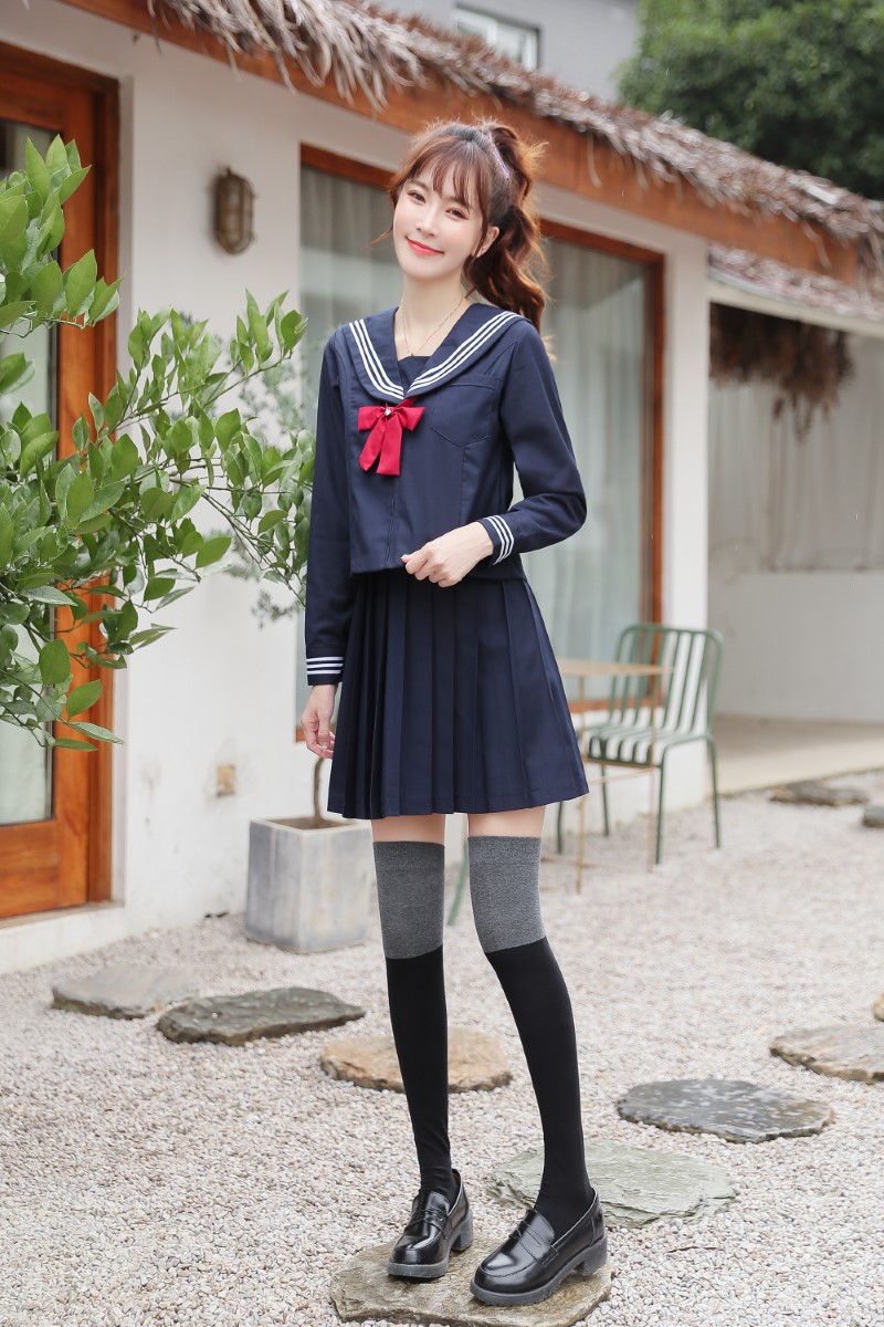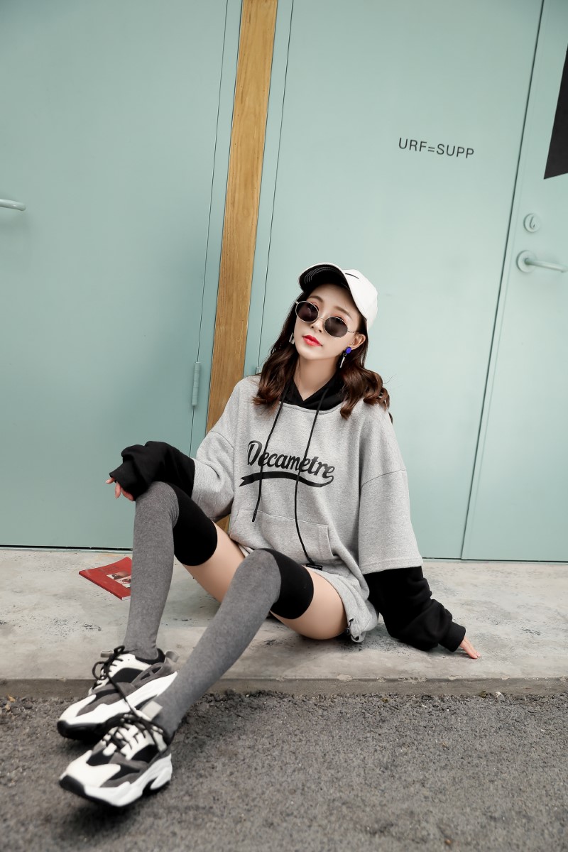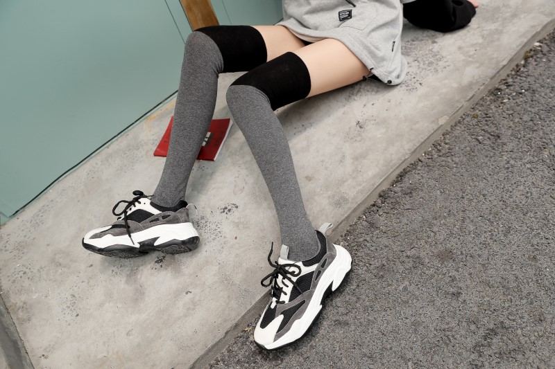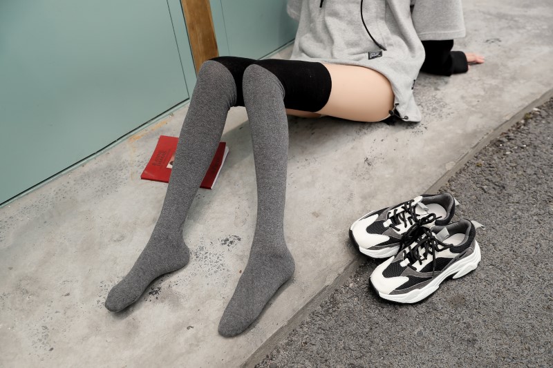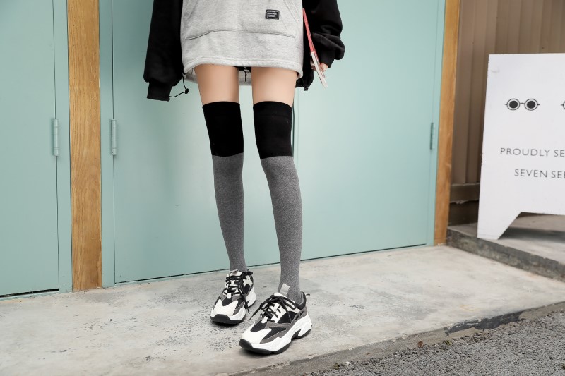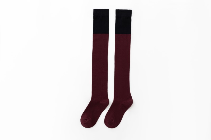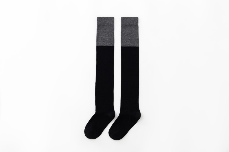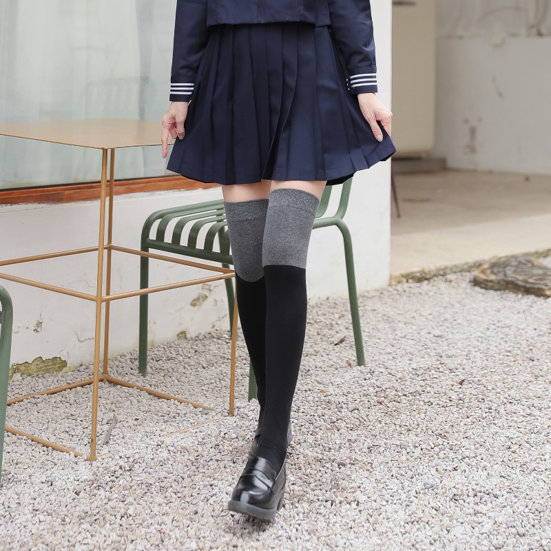 3063 single-needle color block plain weave over-the-knee socks