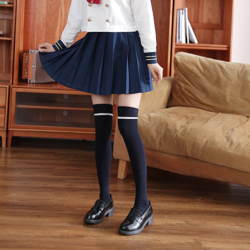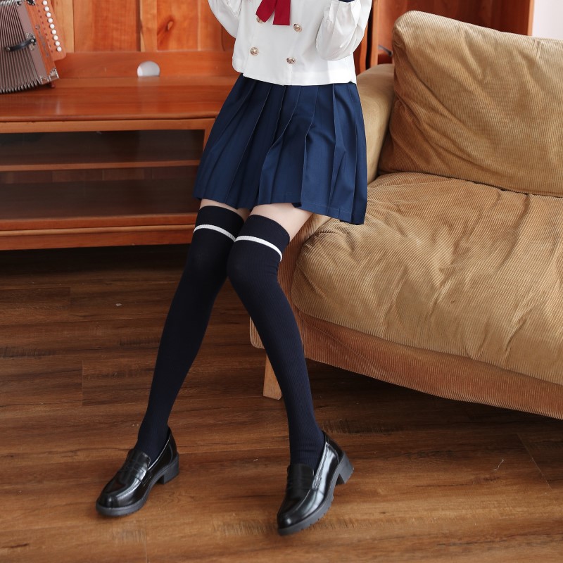 3107 double-needle one-bar vertical strip over-knee socks