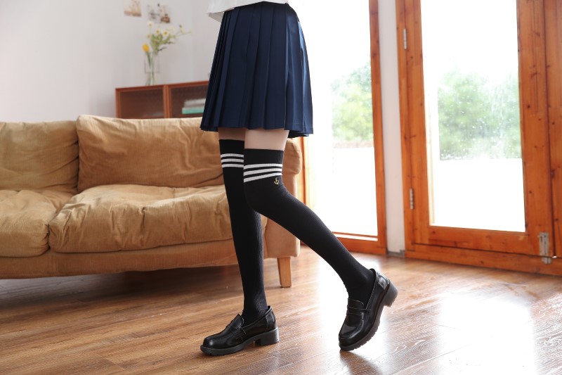 3116 double-needle three-bar anchor embroidered over-the-knee socks