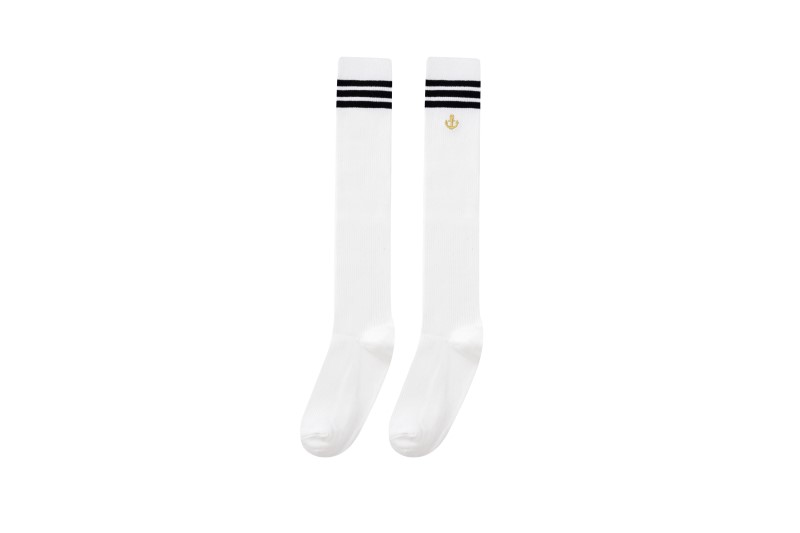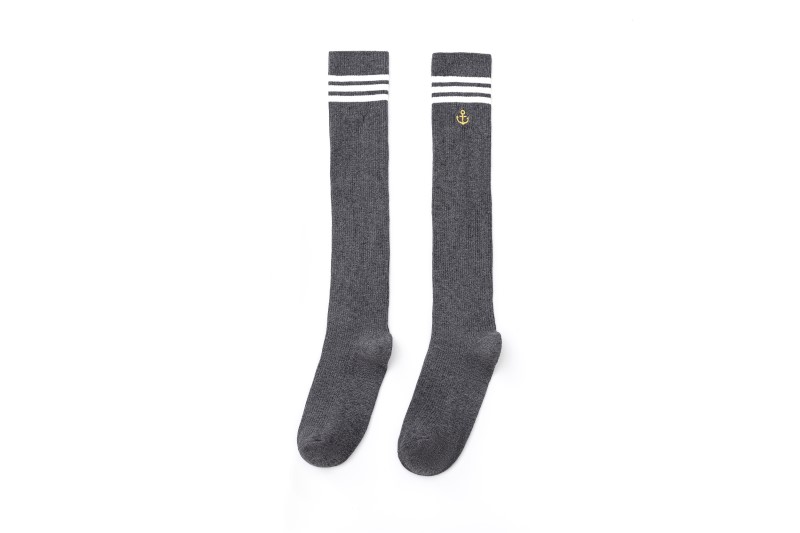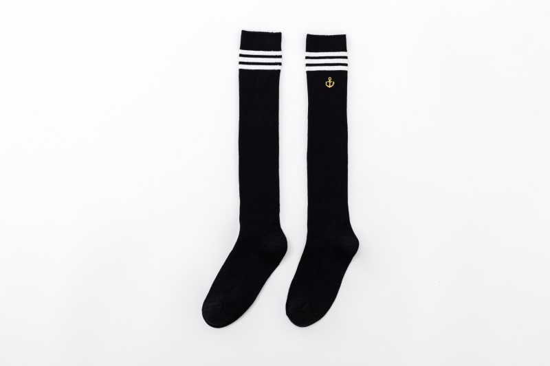 2013 Double Needle Three Bars Anchor Embroidered Calf Socks