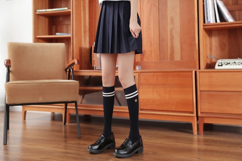 2111 double-needle two-bar badge embroidered calf socks