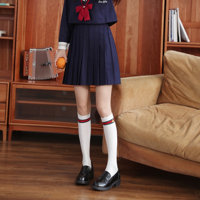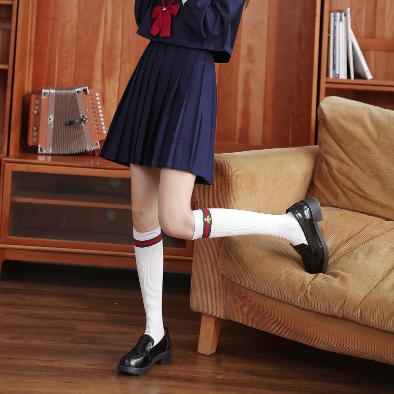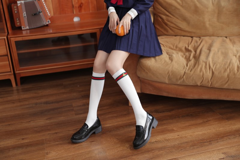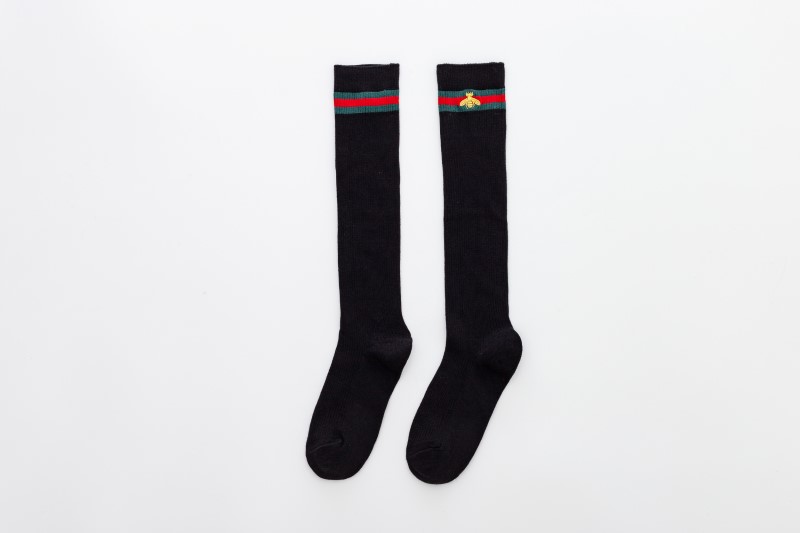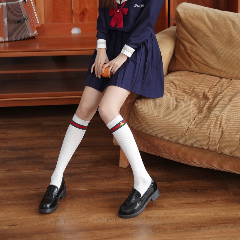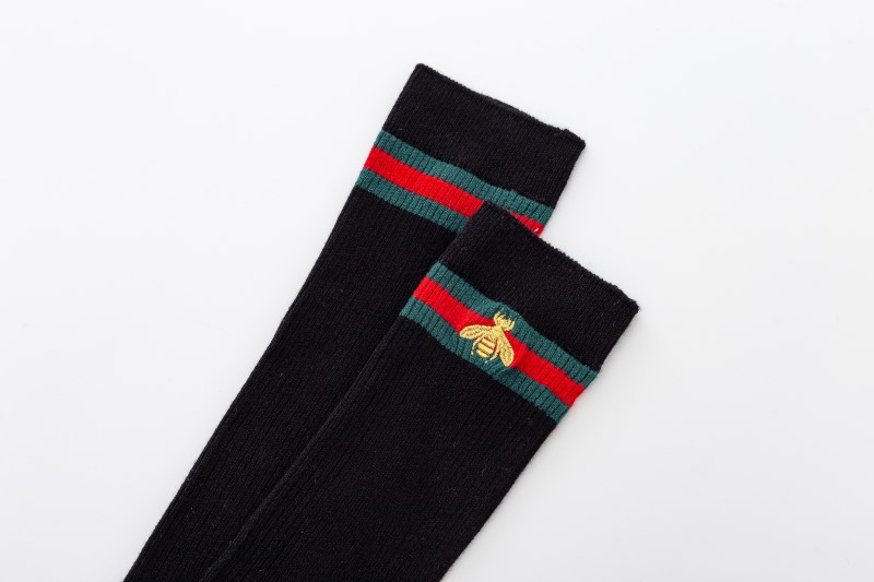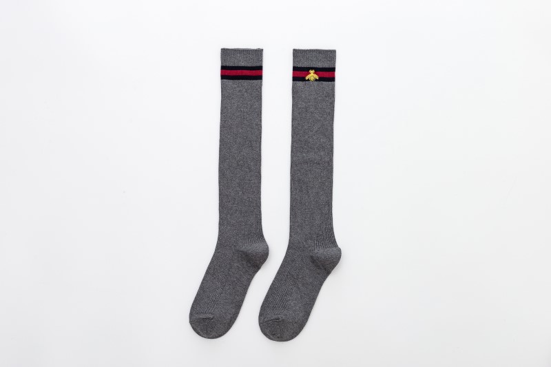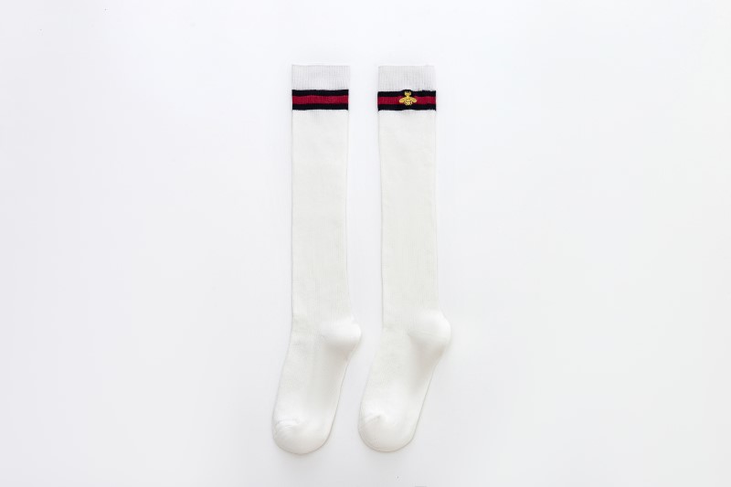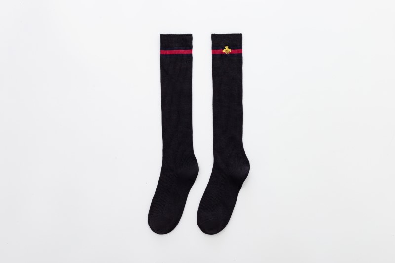 2114 Double Needle Bee Embroidered Calf Socks