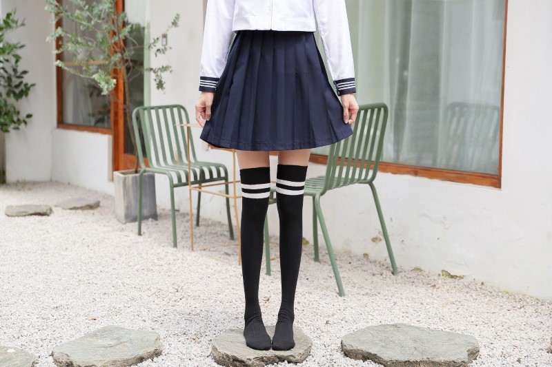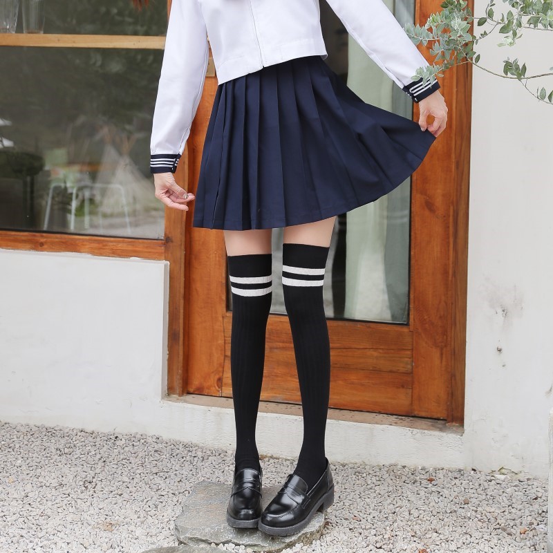 3005 thick two-bar vertical strip over the knee socks
