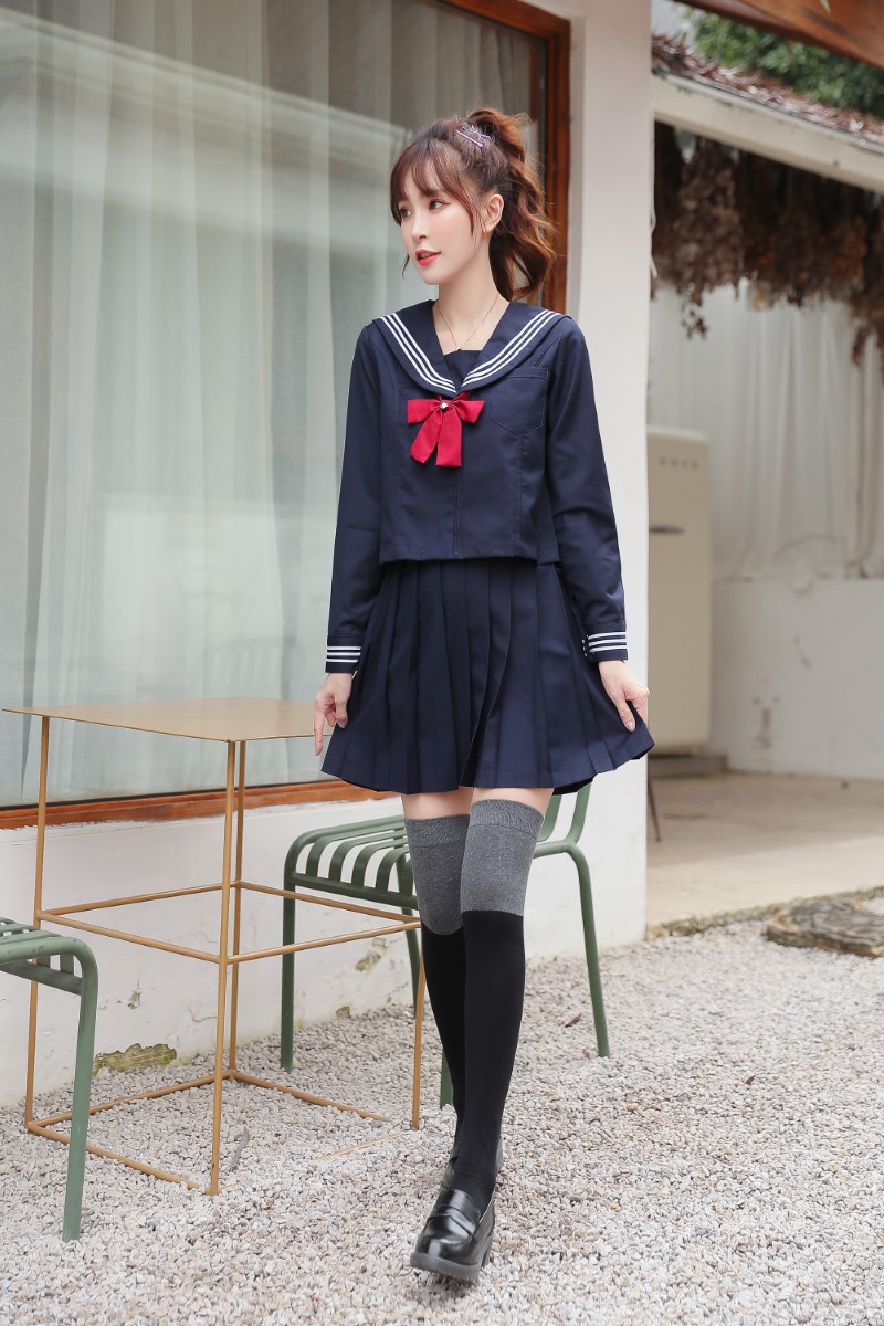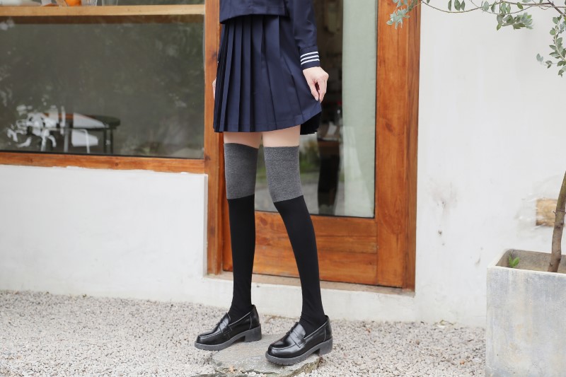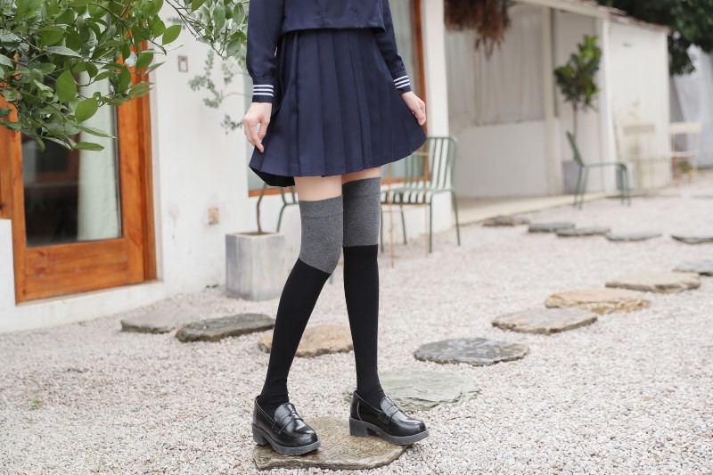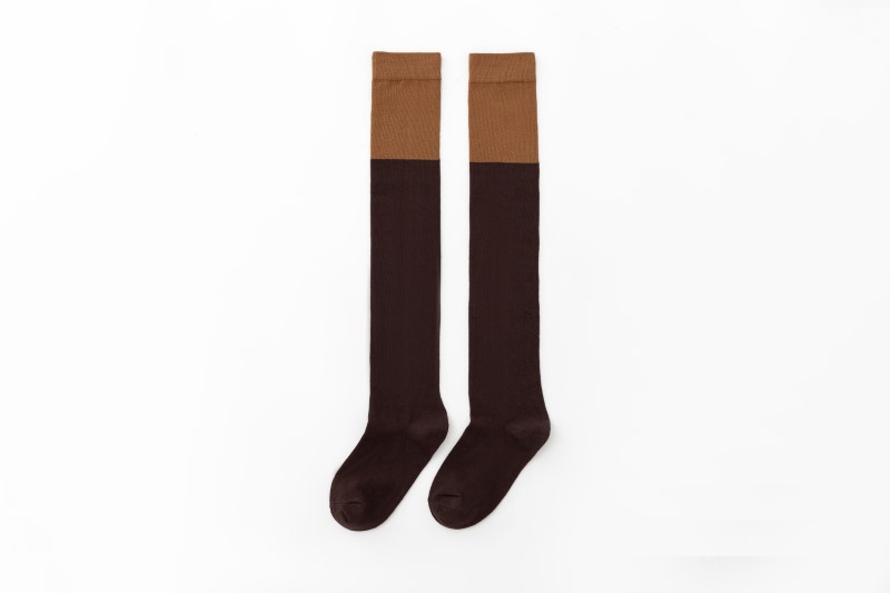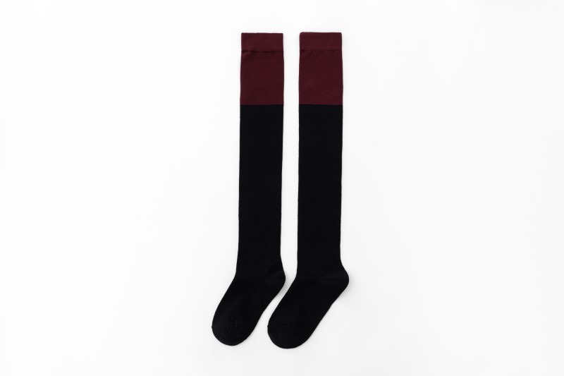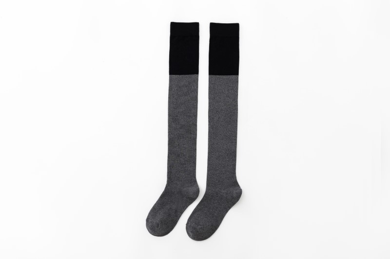 3063 single-needle color block plain weave over-the-knee socks