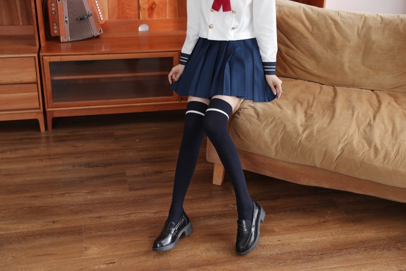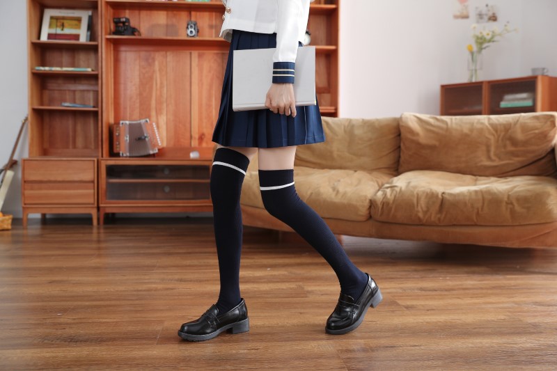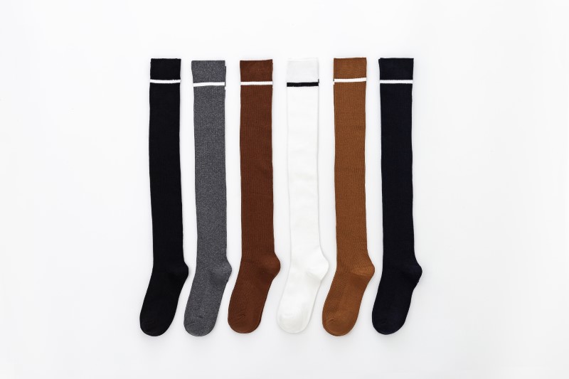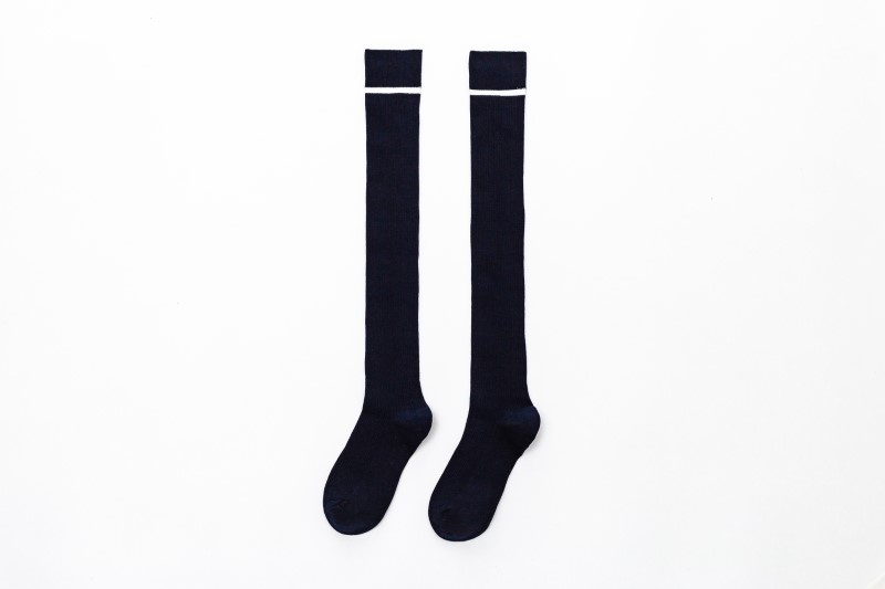 3107 double-needle one-bar vertical strip over-knee socks
