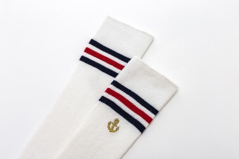 3116 double-needle three-bar anchor embroidered over-the-knee socks