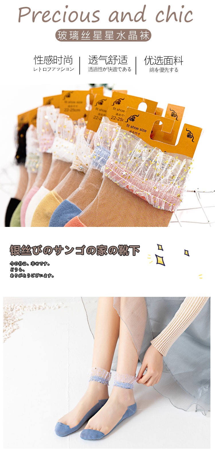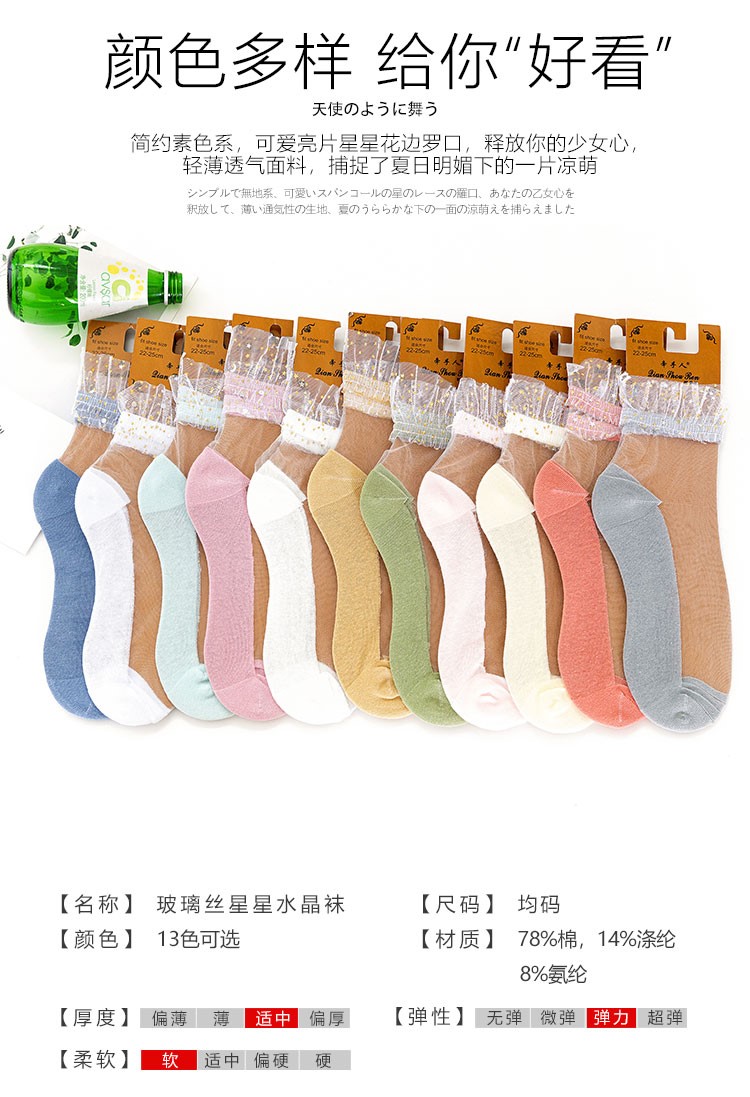 Star glass silk on the edge of the sock